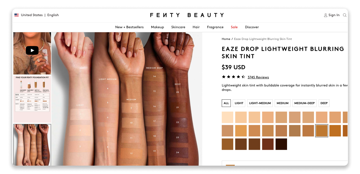 Fenty’s commitment to inclusivity shows up across the customer journey. Discovery tools make it easier to explore products, but advisors play a big role in helping customers find the right match across a wide shade range. Their teams are trained to understand complexion nuances and undertones, which makes recommendations feel personal and accurate.